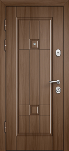 Древесные тона. Входная дверь темный дуб и входная дверь темный орех — универсальная классика под бежевые стены и тёплые полы. Дверь входная темный венге даёт максимальный контраст в светлом интерьере и хорошо поддерживается чернёной фурнитурой.